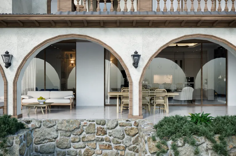 Burada her detay, yaşayan bir sanat eseri gibi tasarlandı. Ahşabın sıcak dokusu, doğal taşın ağırbaşlı asaleti, özel el işçiliğiyle şekillendirilmiş kemerler… Bu sadece bir ev değil, karakteri olan bir yapı.